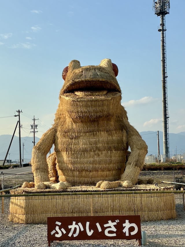 集まって 年末に掛けて 藁 で オブジェを作っいるそうです それが なかなか 見応えがあるからと 出掛けた帰り道 弟夫婦に 連れて行って貰いました・・