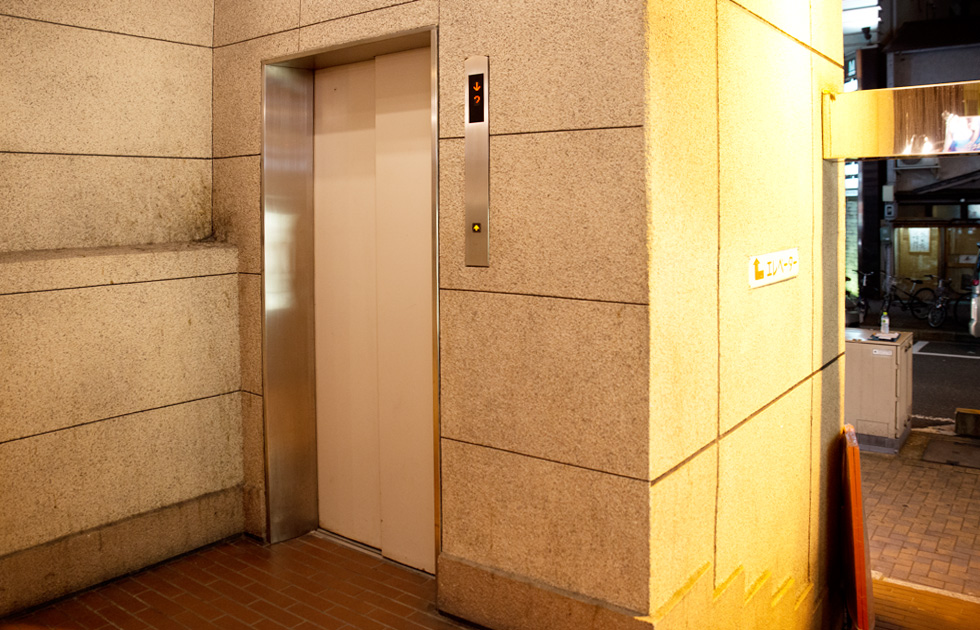エレベーターで